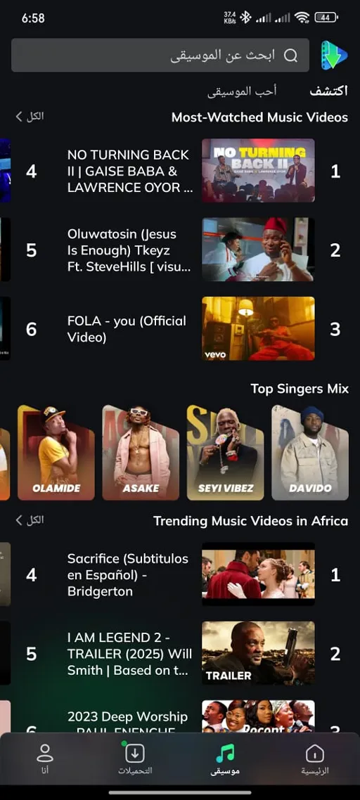 مع كافة التفاصيل السابقة فـ تطبيق Movie Box Pro مهكر اخر اصدار يٌمثل منصة ترفيهية مٌتكاملة تضم المحتوى المرئي والمسموع, كما أن إمكانية تنزيل الموسيقى يتم بشكل بسيط مع محرك بحث عالي الجودة للوصول إلى المٌغني المراد أو الأغاني التي يبحث عنها المستخدم, الموسيقى تظهر في قسم مٌنفرد بعنوان ( Music ) في الواجهة الرئيسية ومع الدخول إليه ستجد أقسام أو فئات كثيرة تٌسهل من عملية الإستماع والتنزيل.