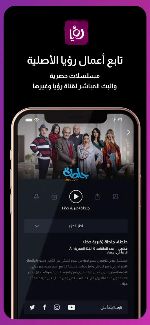 ستجد سلسلة قنوات رؤيا كاملة في هذه الصفحة مِثل ( Roya Sports ), ( Roya Music ), ( Roya TV ), ( Roya Drama ), ( Roya News ), ( Roya Comedy ), ( Roya Kitchen ), كٌل هذه القنوات موجودة بث مباشر على مدار الساعة مع إمكانية إختيار جودة البث والتعرف على المسلسل الحالي والقادم لكافة القنوات بشكل أكثر من رائع في تطبيق رؤيا تي في Roya TV مهكر.